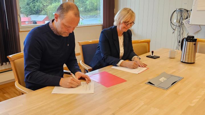 Vestland fylkeskommune signerte i dag kontrakt med Skanska AS om bygginga av Ytre Steinsund bru i Solund.