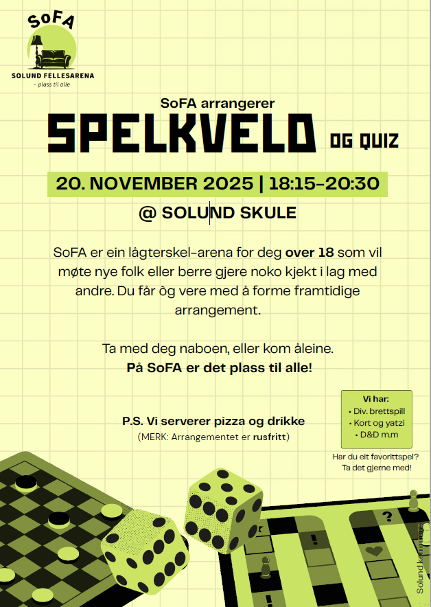 Solund Fellesarena arrangerer til Spelkveld og quiz